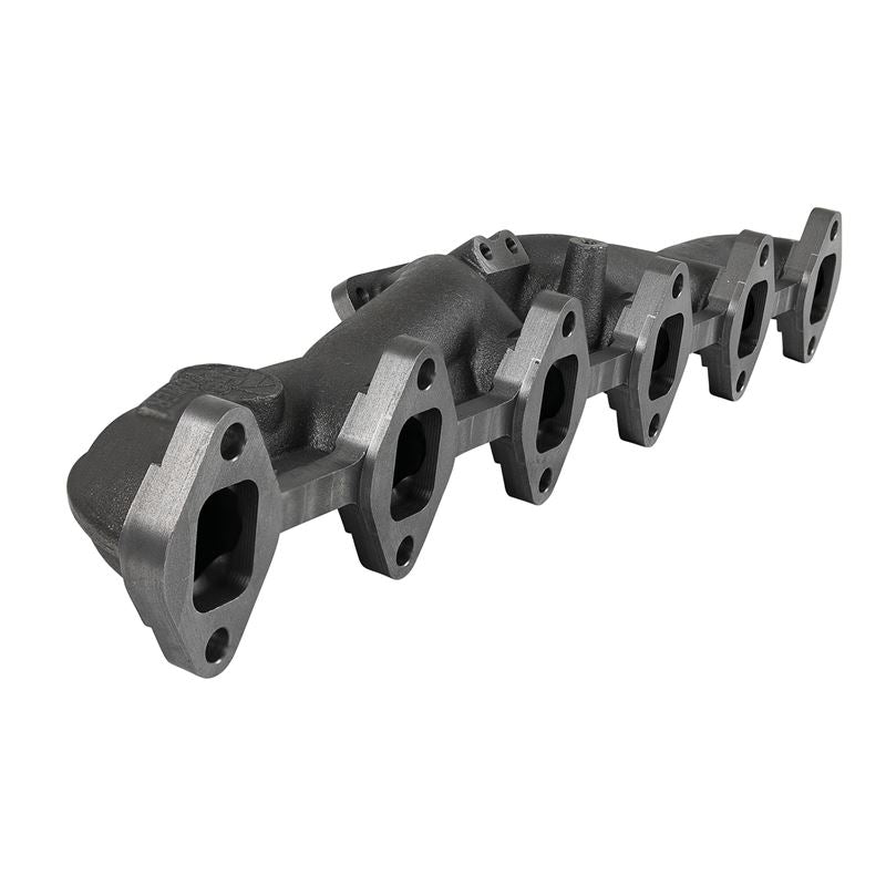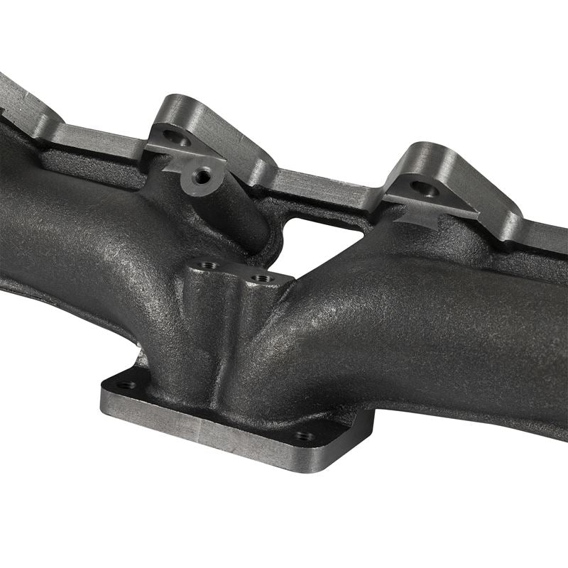 aFe manufactures the BladeRunner manifold from high-quality 304 stainless steel, chosen for its exceptional strength and resistance to heat-related cracking. The manifold’s walls are significantly thicker than the stock version, providing enhanced durability under the extreme thermal conditions typical of diesel exhaust systems. The ported flanges and merged runner design optimize exhaust flow, reducing turbulence and backpressure to maximize engine efficiency.