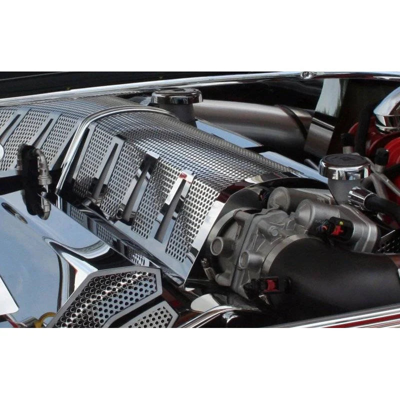 This plenum cover is crafted from premium 304 stainless steel, known for its excellent durability and resistance to rust and corrosion. The high-polish mirror finish is achieved through meticulous manufacturing processes, ensuring a showroom-quality shine that lasts. The perforated pattern not only adds a unique visual texture but also allows subtle glimpses of the intake plenum beneath, creating a layered, custom appearance.