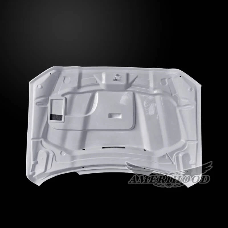 The Amerihood SRT Style Functional Ram Air Hood is a high-quality, performance-focused replacement for the standard factory hood. Constructed from hand-laid fiberglass and resin, it features dual hood scoops that channel cold air into compatible performance intake systems, improving airflow and engine efficiency. Center-mounted heat extractor vents draw hot air from the engine bay, enhancing cooling and overall performance.