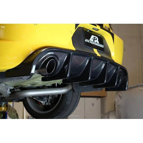 The APR Carbon Fiber Rear Diffuser is a high-performance aerodynamic component engineered to optimize airflow beneath the vehicle, improving stability and downforce. As the car moves, displaced air at the rear can create turbulence and low-pressure zones, reducing efficiency. This diffuser redirects high-speed underbody airflow, allowing a smooth transition into the low-pressure area behind the vehicle.