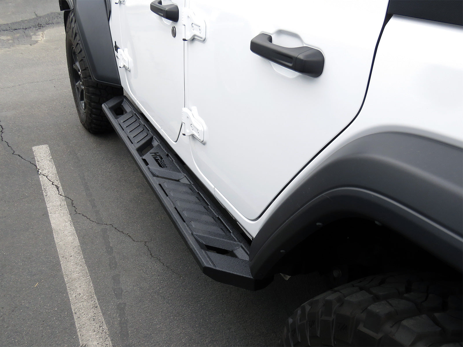 WB10AAJ6M APS 07-18 Jeep Wrangler JK 2-Door Running Boards (Pair). The running board features heavy-duty carbon steel construction; ensuring durability and reliability. Unique slotted step areas help trap dirt, snow, and mud from your boots, keeping your truck cab clean.