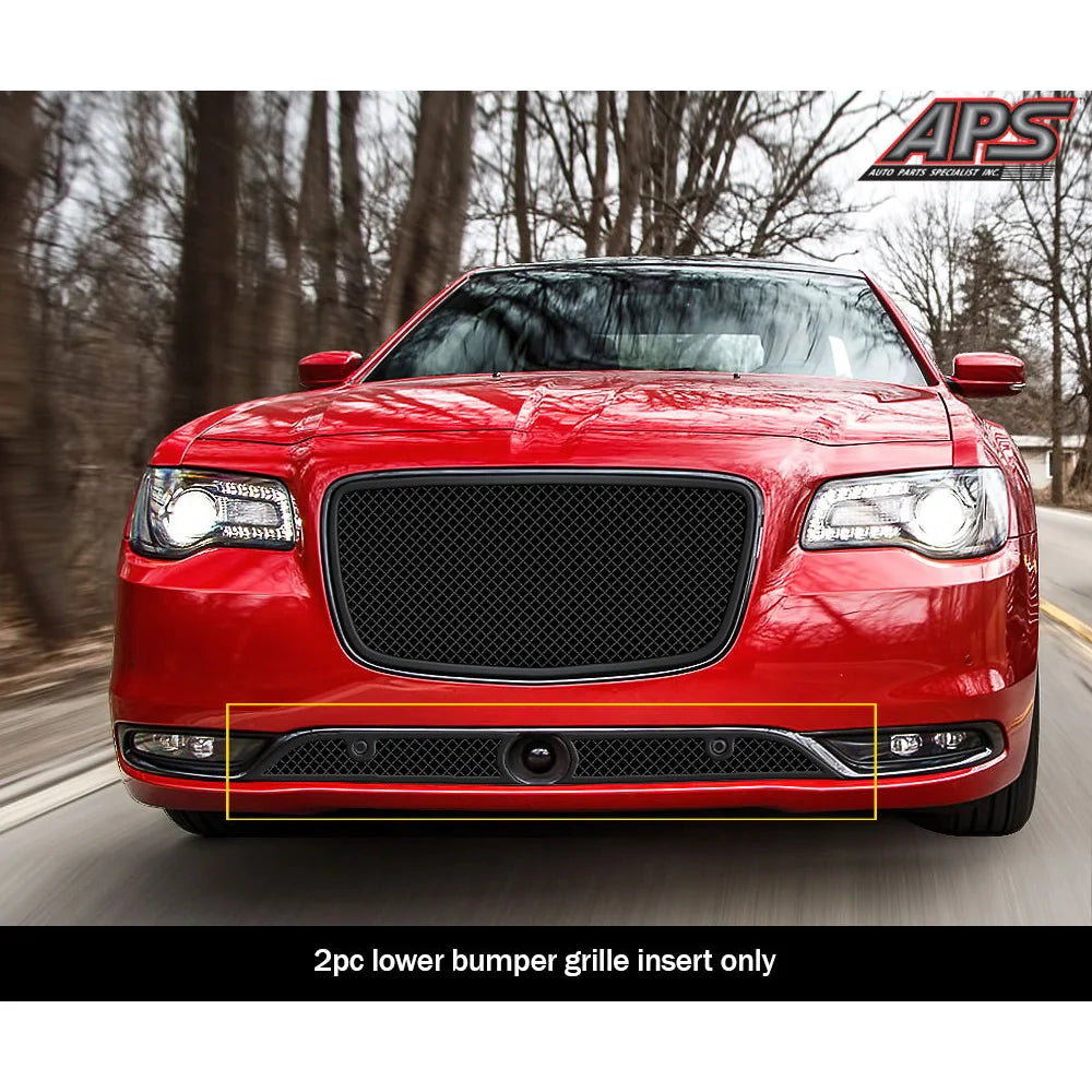 GR18GFC80K APS 15-24 Chrysler 300 Black Stainless Lower Mesh Grille (WITH Adaptive Cruise Control). A unique black mesh design that adds a rugged and aggressive look and gives your vehicle an upgraded appearance.