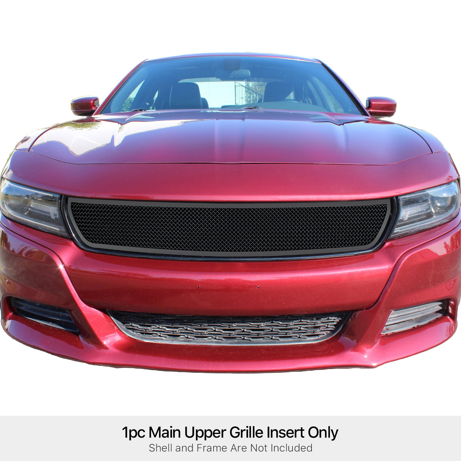 GR04GFC44H APS 15-23 Dodge Charger GT & SXT Black Stainless Upper Mesh Grille. A unique black mesh design that adds a rugged and aggressive look and gives your vehicle an upgraded appearance.