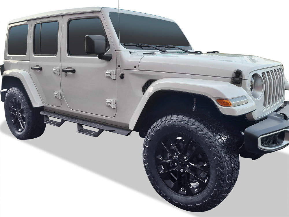 WB10RAA1B APS 18-25 Jeep Wrangler JL 4-Door Side Armor RS Nerf Bars (Pair). The aggressive styling of the matte black sidestep gives your vehicle an upgraded appearance. The running board features heavy-duty carbon steel construction, ensuring durability and reliability.