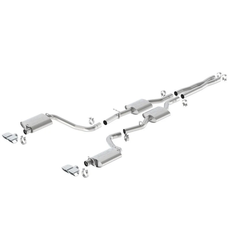Fits vehicles WITHOUT MDS (Cyl. Deactivation) Valves. System contains a merge X-Pipe for increased performance and improved sound. This system features the aggressive ATAK® sound and exits through 4" x 2.5" mirror polished T-304 stainless steel tips. BORLA® Cat-Back™ and Axle-Back multi-core technology is designed to unleash hidden horsepower. Increased exhaust velocity adds power, driving excitement, fuel economy, and the distinctive BORLA® Sound of Power respected by motoring enthusiasts everywhere.