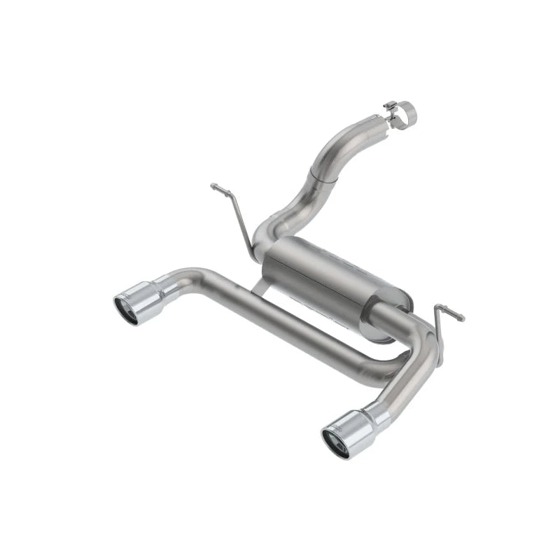 Coverage includes 4XE models. The 2.75" into dual 2.5" diameter BORLA® Axle-Back system is tuned for sound and performance on the new 2.0L engine. For those looking for an aggressive sound, the ATAK® sound level delivers just that. It provides a much louder sound than stock and makes the turbo 2.0L growl. Even with an aggressive sound like the ATAK®, you can still count on our No-Drone guarantee. This system features 3.5" polished T-304 stainless steel tips. A system with a black coated muffler assembly includng the 3.5" tips is also available. The T-304 austenitic stainless steel construction gives the durability a Wrangler owner needs. Ultra-smooth mandrel bends ensure maximum flow & power, and precision computer numerical control (CNC) manufacturing ensures an accurate fit. Choose how you want to be heard and bolt on a BORLA®.