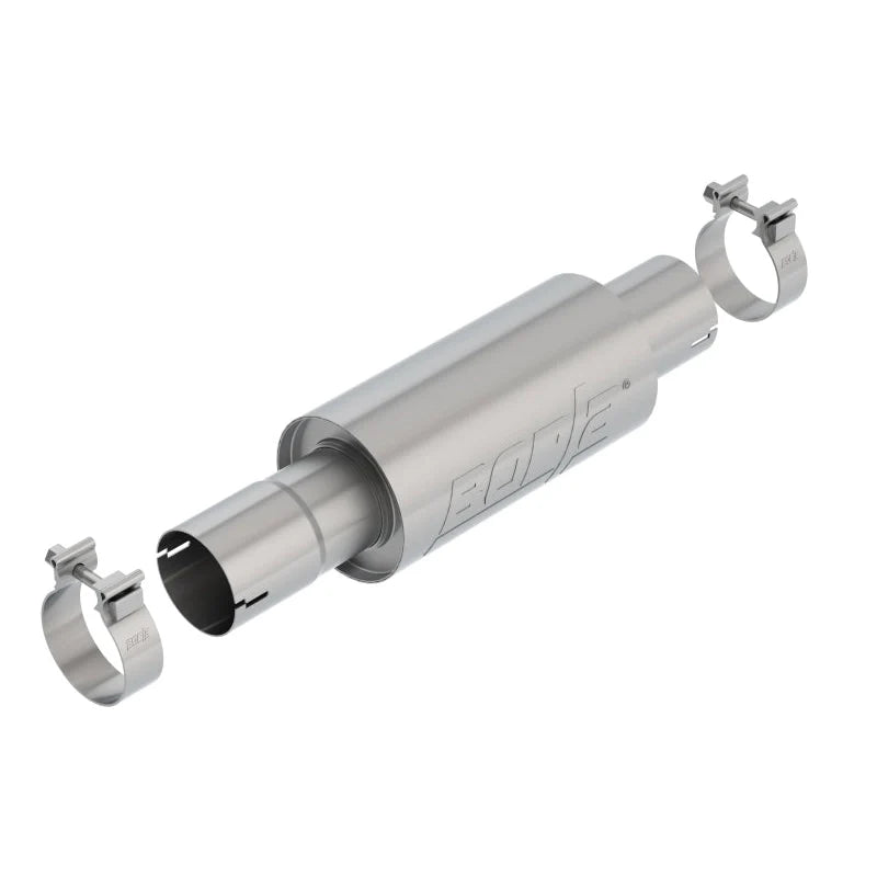 Refine the sound of your vehicle Borla Cat-Back™ system with the Borla 3" Optional Front Muffler, compatible with (including e-Torque) in 2 & 4WD Quad or Crew Cab configurations with a 5'7" short bed, 144.6" wheelbase. This muffler is designed to dampen the aggressive tone of select Borla systems, providing a quieter yet performance-oriented exhaust experience.