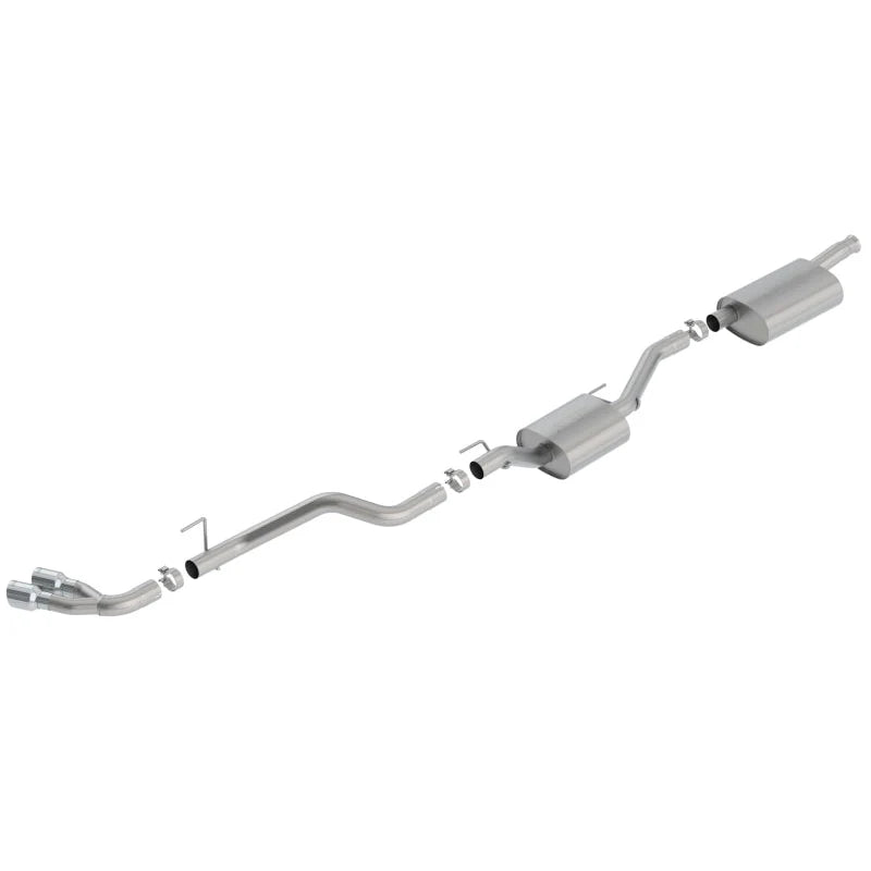 This 2.75" diameter BORLA® Cat-Back™ system is specifically tuned for flow and sound on the Gladiator‘s 3.6L Pentastar engine. The Touring sound level delivers a mellow sound that provides just a little more body and volume when compared to stock. It is perfect for those looking for a warm, throaty sound all without any of the annoying drone inside the cabin. This system features a single side exit with dual outlet 3.5" polished T-304 stainless steel tips. A system with a black coated tail pipe and dual outlet 3.5" tip is also available. The T-304 austenitic stainless steel construction provides an increase in durability. Ultra-smooth mandrel bends ensure maximum flow & power, and precision computer numerical control (CNC) manufacturing ensures an accurate fit. Choose how you want to be heard and bolt on a BORLA®.