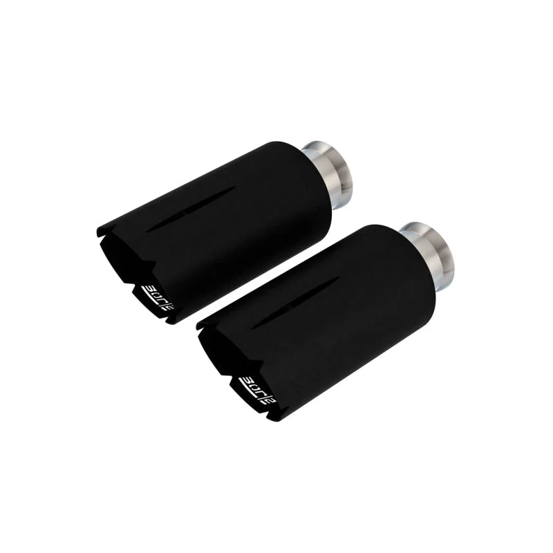 Upgrade your vehicle with these unique 5" round square-cut Brawler style high temperature black coated T-304 stainless steel tips. The BORLA® logo is laser cut in the side wall of the tip. Angle-cut bright chrome on T-304 stainless steel tips, and angle-cut black chrome on T-304 stainless steel tips are also available. They are designed to work with the BORLA® system, or the Original Equipment (O.E.) system. They feature clamp on installation. Clamps NOT included, reuse O.E. clamps. Includes two tips.