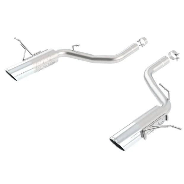 System features the aggressive ATAK® sound level. ATAK®, Acoustically-Tuned Applied Kinetics, technology is based on specifically-tuned attributes of the internal muffler cores, which are calibrated on a vehicle-by-vehicle basis to deliver the most desirable sound. Even though the sound on the exterior is uncompromising, the sound in the cabin is devoid of harsh resonance, a product of painstaking engineering and over 40 years of experience. BORLA® systems unleash hidden horsepower. Increased exhaust velocity adds power, driving excitement, fuel economy, and the distinctive BORLA® Sound of Power respected by motoring enthusiasts everywhere. The system exits through 5" bright chrome on T-304 stainless steel tips.