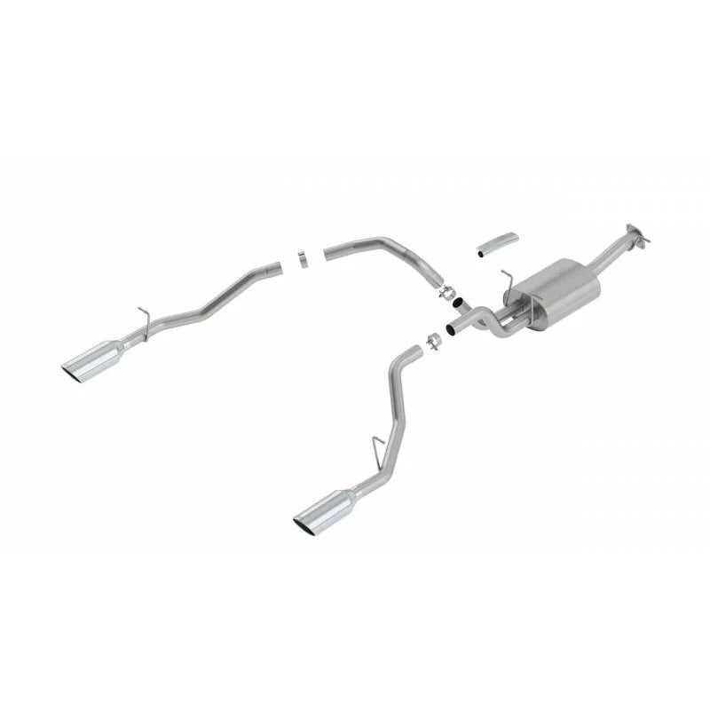 140758 Borla 19-24 Ram 5.7L Hemi 1500 Touring Exhaust System. Enhance your vehicle with the Borla Touring Cat-Back Exhaust. This 3" into dual 2.5" system delivers a smooth, mellow Touring tone with no drone inside the cabin. Exits through 5" polished or black chrome tips. Built from premium T-304 stainless steel, mandrel-bent for performance, and backed by Borla’s Million-Mile Warranty.