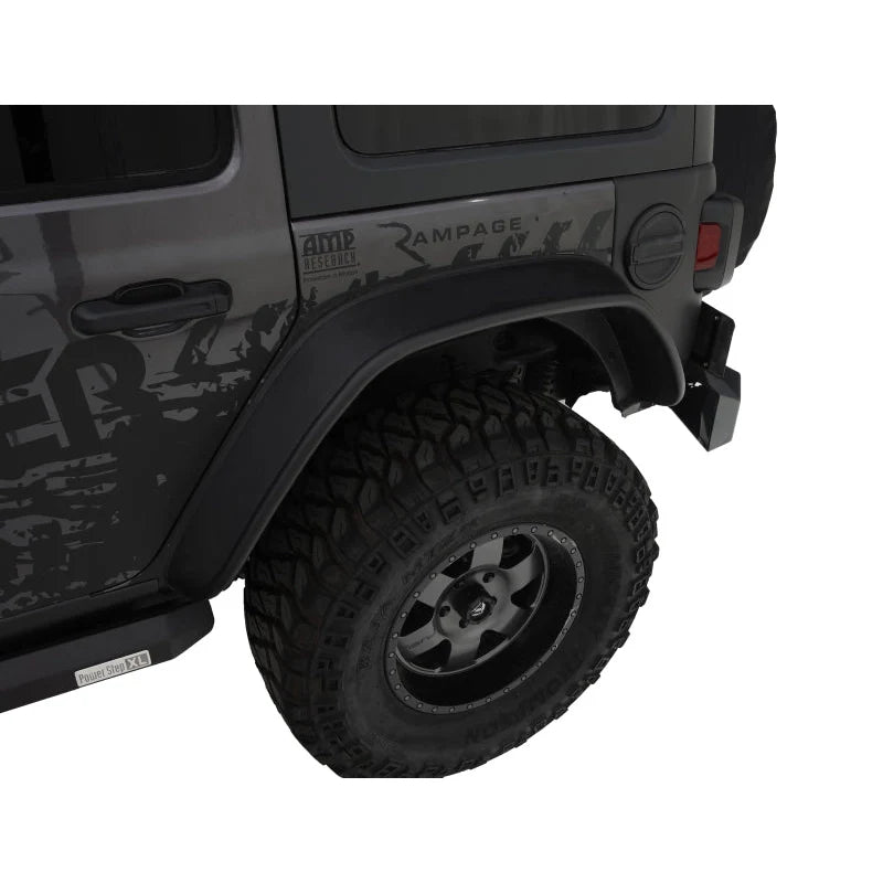 The flares provide rear tire coverage of approximately 4.5 inches and a rear height of 4.3 inches, optimizing protection and clearance for larger off-road tires.