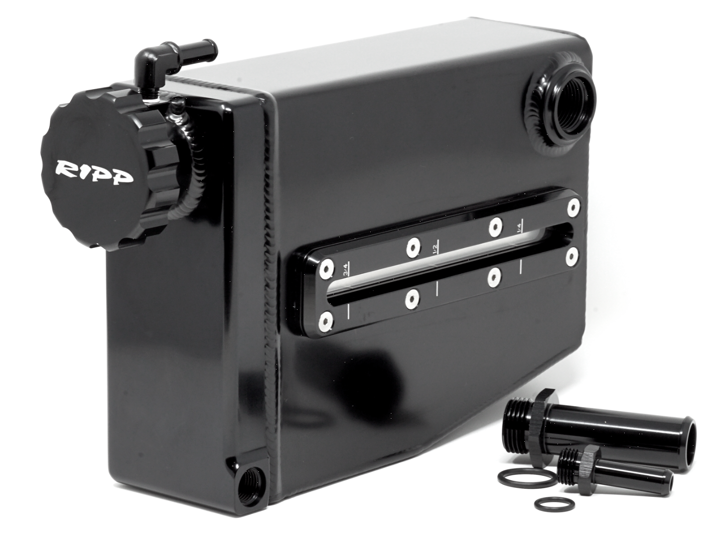 Crafted from high-quality billet aluminum, the Ripp coolant expansion tank is engineered for strength and longevity. The satin black powder coat finish not only protects against corrosion but also adds a sleek, professional look to your engine bay. The tank’s design incorporates an integrated fluid sight window, allowing you to quickly check coolant levels and condition without the need to remove the cap, enhancing convenience and safety.