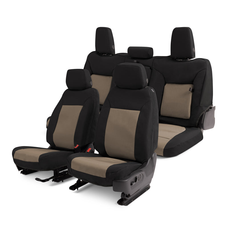 - Custom PrecisionFit second row seat covers in Tan/Black Endura fabric