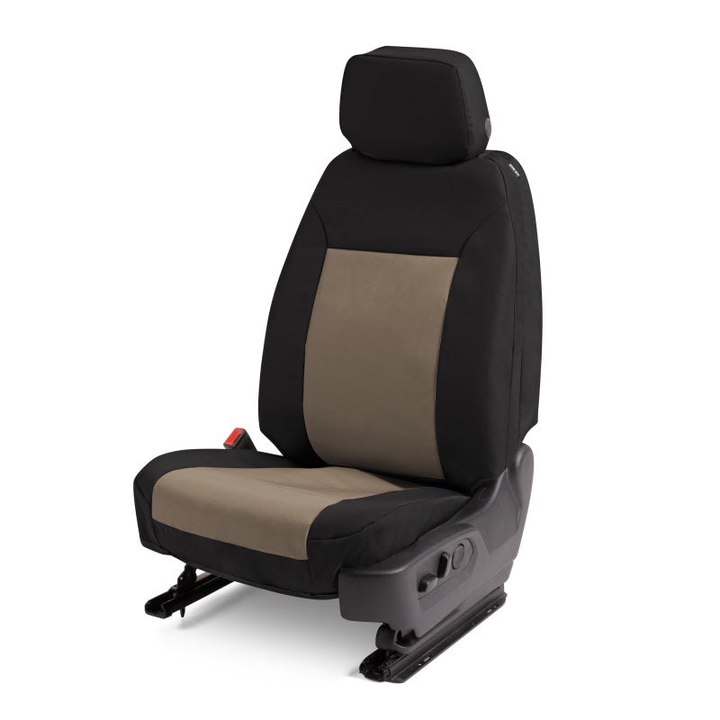 The PrecisionFit seat covers are constructed from Covercraft’s proprietary Endura fabric, known for its exceptional durability and resistance to abrasion. This tightly woven material offers a soft yet rugged surface that stands up to daily abuse while maintaining comfort for passengers. The two-tone Tan/Black design complements a variety of interior color schemes, adding a refined look without overpowering your vehicle’s cabin.