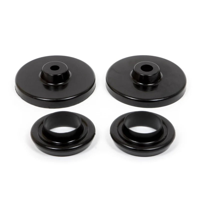 The spacers are precision-engineered to fit seamlessly between the coil springs and the vehicle’s suspension mounts, preserving the factory suspension geometry. The black finish not only provides corrosion resistance but also complements the rugged aesthetic of the Jeep Gladiator.