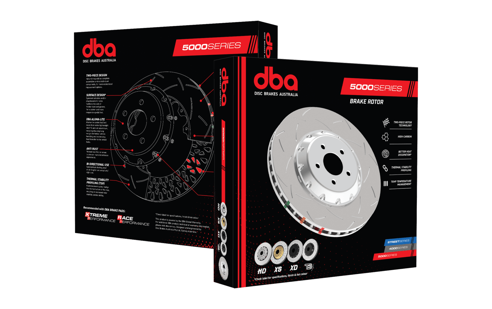 DBA 5000 Series Rotors utilize High Carbon Alloyed Iron (XG-150) and Thermal Stability Profiling (TSP) allowing constant extreme heat cycles designed for those accerlate braking scenarios. 5000 XS rotors provide improved braking performance, better brake pedal feel and with the benefit of looking the part as well.