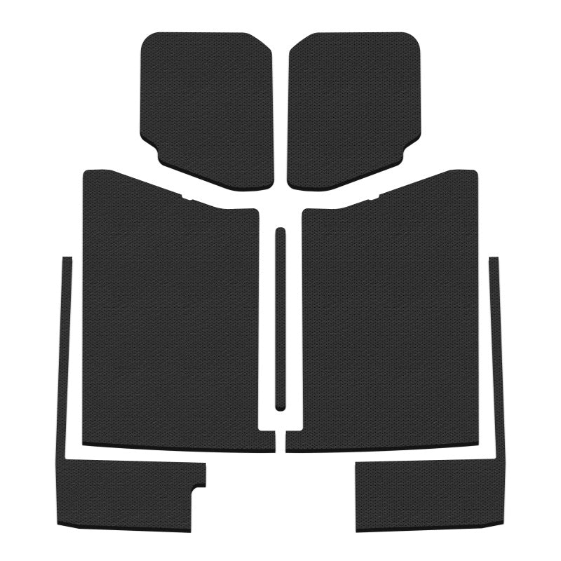 Each of the seven pieces is pre-cut and shaped to fit the contours of Jeep Gladiator hardtops precisely, ensuring a seamless installation without gaps or overlaps. The peel-and-stick adhesive backing provides a secure bond to the factory headliner surface without requiring additional tools or hardware.