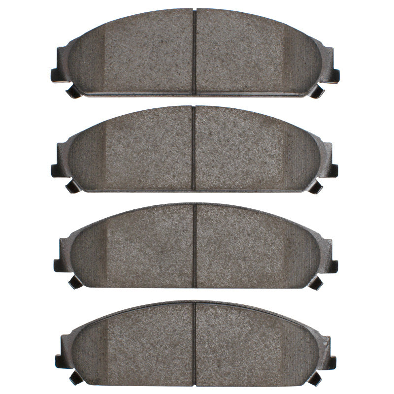 These brake pads feature advanced ceramic friction materials that provide a balance of performance, durability, and noise reduction. Ceramic compounds are known for their stable friction characteristics and resistance to fade under high temperatures, making them ideal for modern braking systems. The formulation is carefully selected to be rotor-friendly, minimizing rotor wear and preventing scoring or damage during braking.