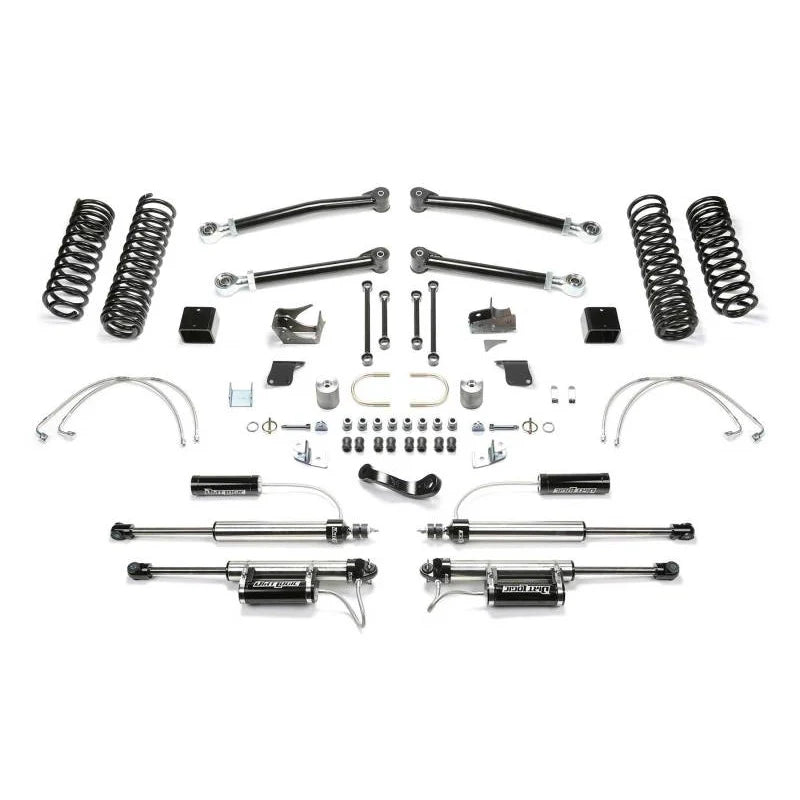 By utilizing factory link arm mounts and replacing the vulnerable lower link arms with heavy-duty components, Fabtech ensures durability and longevity in harsh environments. The inclusion of Dirt Logic 2.25 reservoir shocks and dual-rate long travel coil springs balances load capacity with extended suspension travel, making this system a comprehensive upgrade for serious Jeep owners.