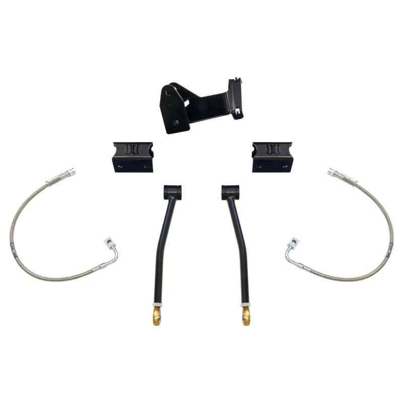 Every component in the ICON Rear Box Kit is crafted with durability and precision in mind. The rear track bar bracket is CNC laser-cut from high-grade steel and brake-formed for exact fitment, then powder coated to protect against rust and corrosion. The adjustable sway bar links utilize FK rod ends combined with polyurethane bushings, offering a balance of strength, articulation, and noise reduction. Billet aluminum bump stop spacers are CNC machined to tight tolerances, ensuring consistent suspension performance. The stainless steel braided brake lines provide superior resistance to abrasion and expansion, maintaining brake feel and safety after lift installation.