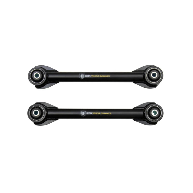 The rear upper link arms are fabricated from high-strength 1026 DOM steel, CNC machined and notched for precise fitment and enhanced structural integrity. The tubular design reduces weight while increasing rigidity compared to factory stamped steel components. ICON’s in-house welding process guarantees consistent quality and durability, making these link arms ideal for both street and off-road use.