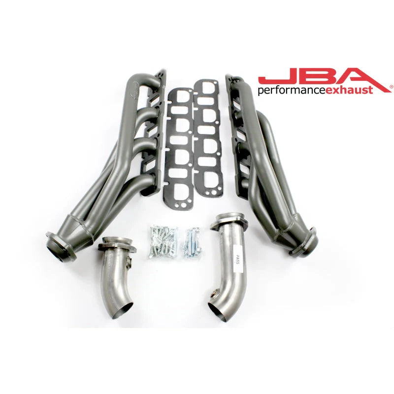 JBA shorty headers are one of the foremost performance upgrades you can bestow upon your beloved car, truck, or SUV. JBA Headers are significantly less restrictive than stock manifolds and dramatically increase the power and efficiency of your engine. Each header is constructed from durable stainless steel to endure the abuse of racing, towing, and daily driving – built to withstand it all. JBA’s proprietary Firecone collector design uses race proven technology for producing maximum power and torque gains where you drive most. Each system includes factory style emission connections and high-quality hardware for a professional no-leak installation.