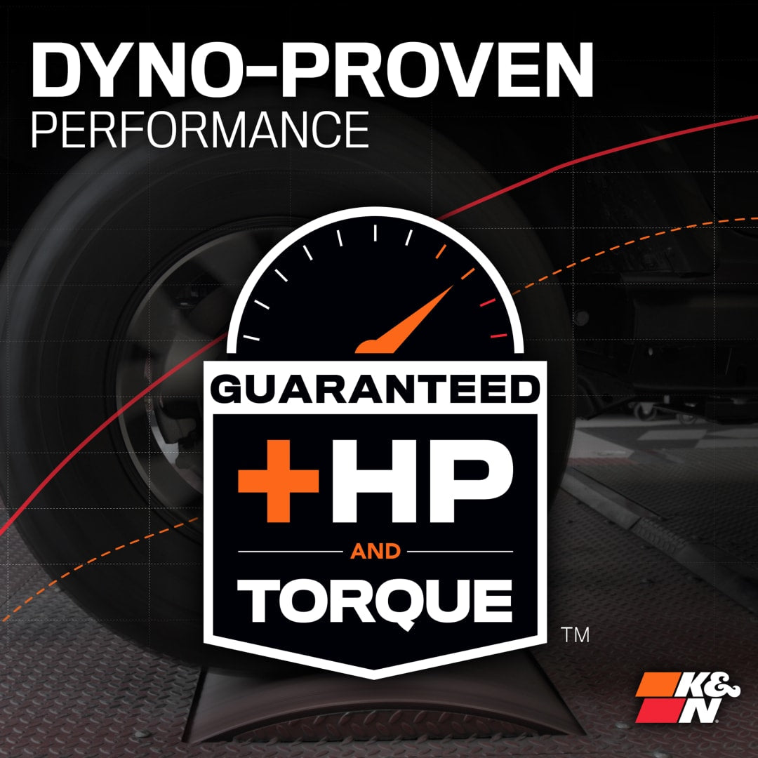 This system includes BOTH a redesigned larger hood scoop inlet for the ram air scoop and K&N’s intake. This unique hood scoop design improves from the restrictive factory unit increasing air volume to the K&N intake. The intake filter is one of our largest ever, an oversized 20 1/8 inch long washable, reusable High-Flow Air Filter™ featuring our premium oiled cotton filter media. On top of this, the intake system benefits from larger drain holes to prevent water buildup in the air box and retains the factory T-Rex eating a raptor graphic. Engineered to deliver enhanced engine and supercharger sound. All these features combine to deliver huge performance gains with an estimated increase of 29 Horsepower and 40 LB-FT Torque over stock.