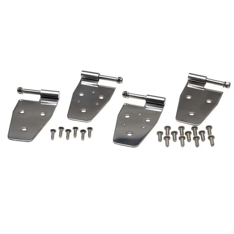 • Polished silver T-304 stainless steel door hinge set (door-mounted hinges)