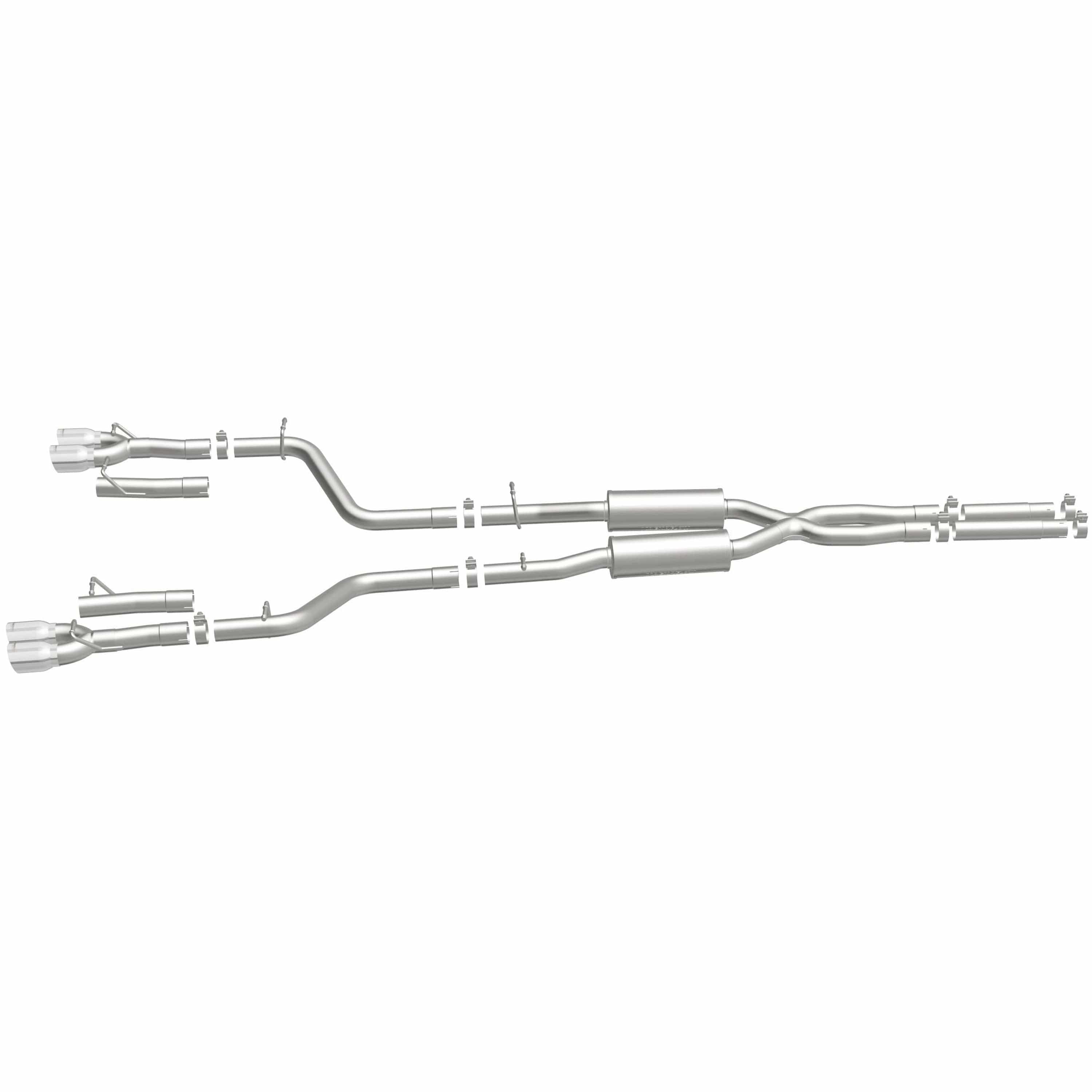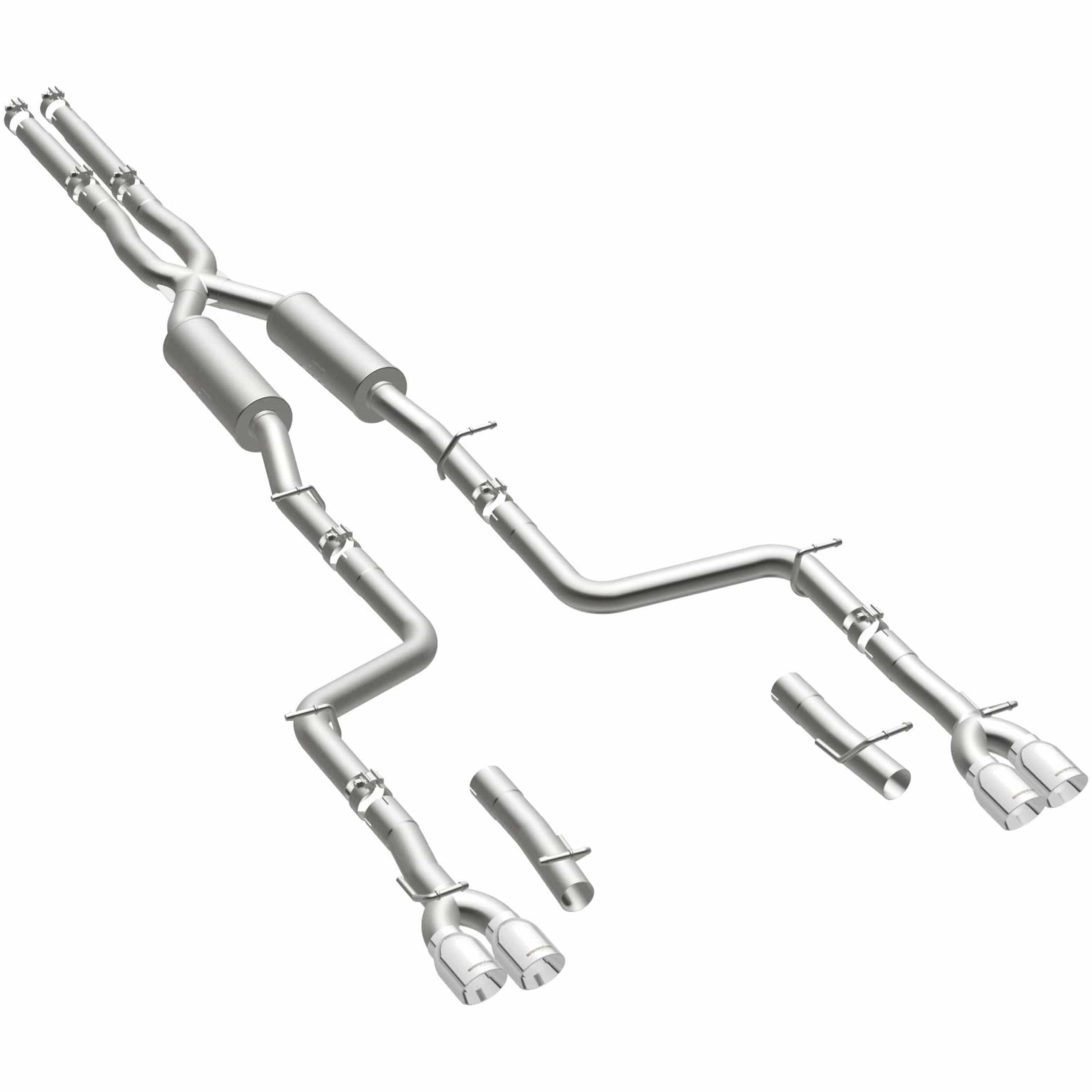 This exhaust system is crafted entirely from premium stainless steel, providing excellent resistance to rust and corrosion, which is essential for longevity in all driving conditions. The mandrel-bent piping maintains a consistent diameter throughout bends, preventing flow restrictions and maximizing exhaust scavenging. The straight-through mufflers are designed to minimize backpressure while delivering the signature MagnaFlow deep tone. The polished quad split tips not only enhance the visual appeal but also feature a folded edge design for added strength and style.