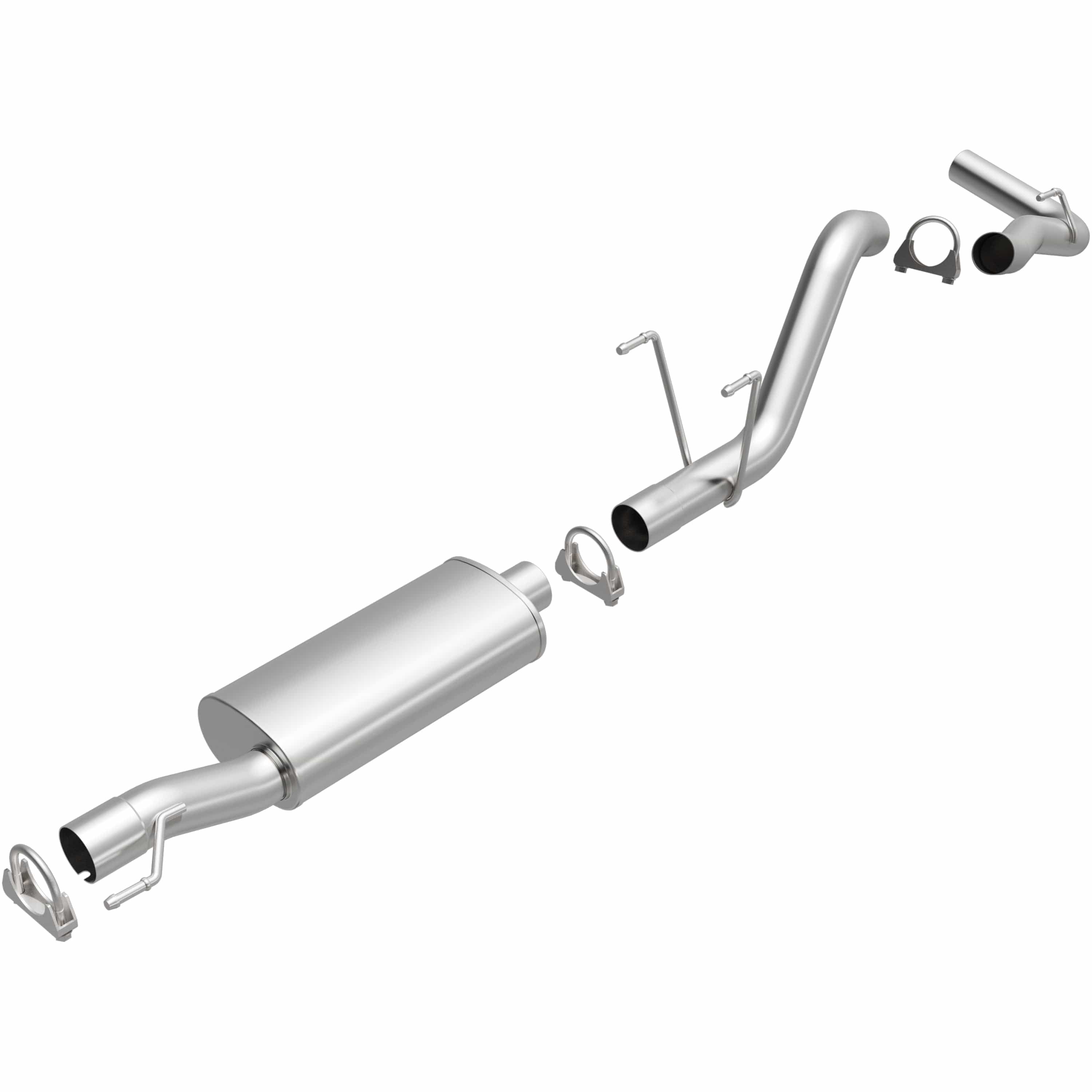 The Magnaflow Direct-Fit Replacement Exhaust System is crafted from high-quality aluminized steel, chosen for its excellent resistance to rust and corrosion under normal driving conditions. The system’s pipes are mandrel bent, which means they maintain a consistent diameter throughout bends to optimize exhaust gas flow and reduce restrictions. This design enhances overall engine efficiency and helps preserve power output.