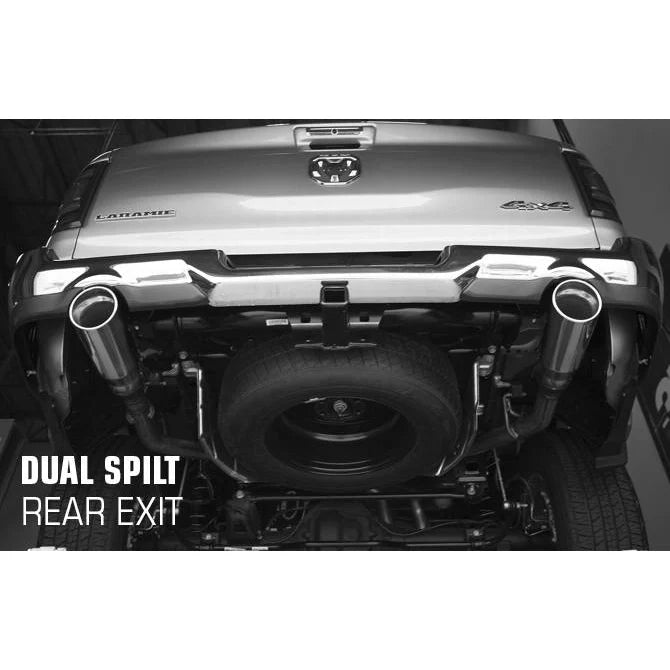 19429 / 19430 Magnaflow 19-24 Ram 5.7L Hemi 1500 (Excludes Tradesman) Exhaust System. The MagnaFlow Street Series Cat-Back Exhaust delivers bold, resonant performance for your 5.7L vehicle. Featuring mandrel-bent 3in. piping, a single Straight-Through muffler, and dual split 5in. rear tips (polished or black), it produces aggressive exterior and moderate interior sound. Direct-fit design ensures easy installation, enhancing both performance and style.