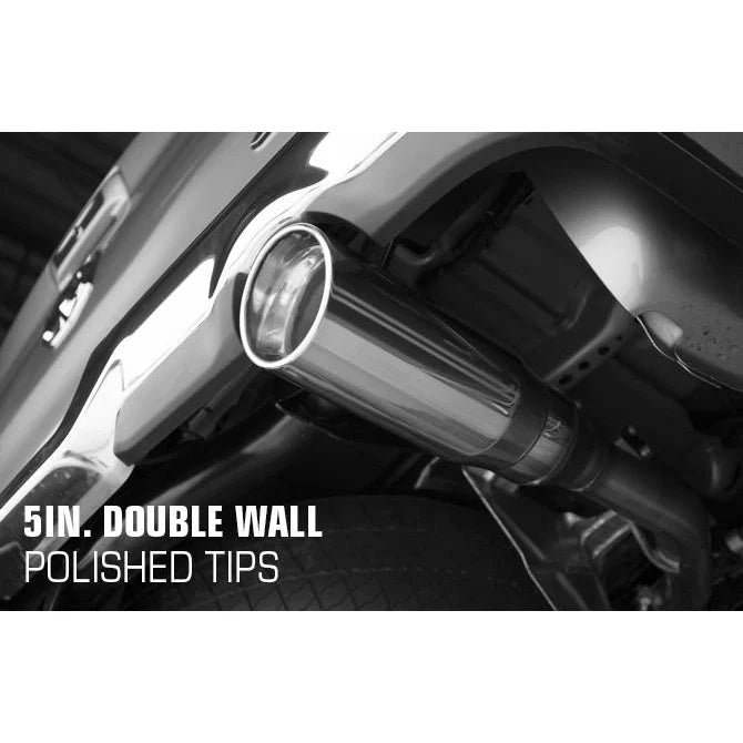 - Dual Split Rear Exit with 5in. Polished or Black Welded-On Tips