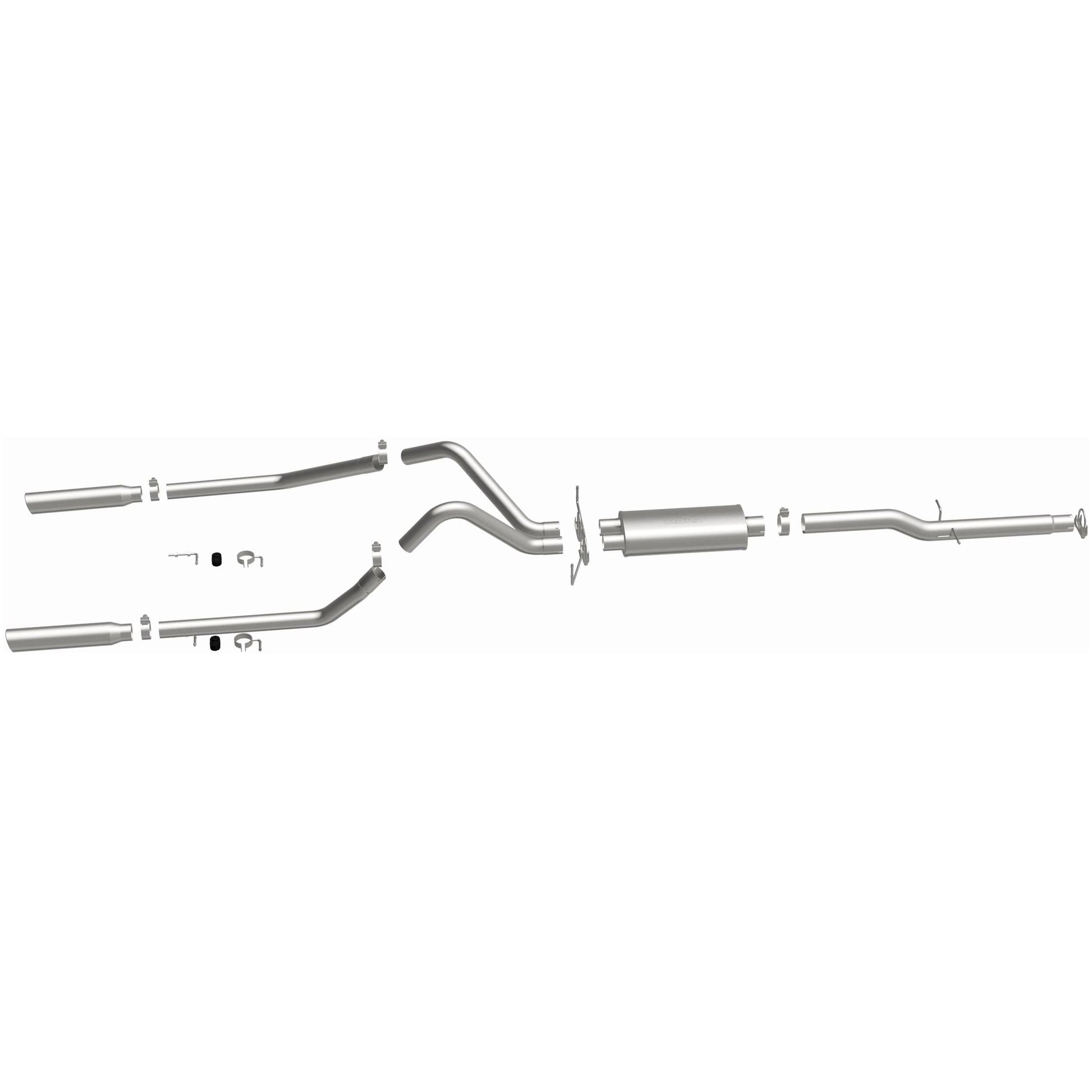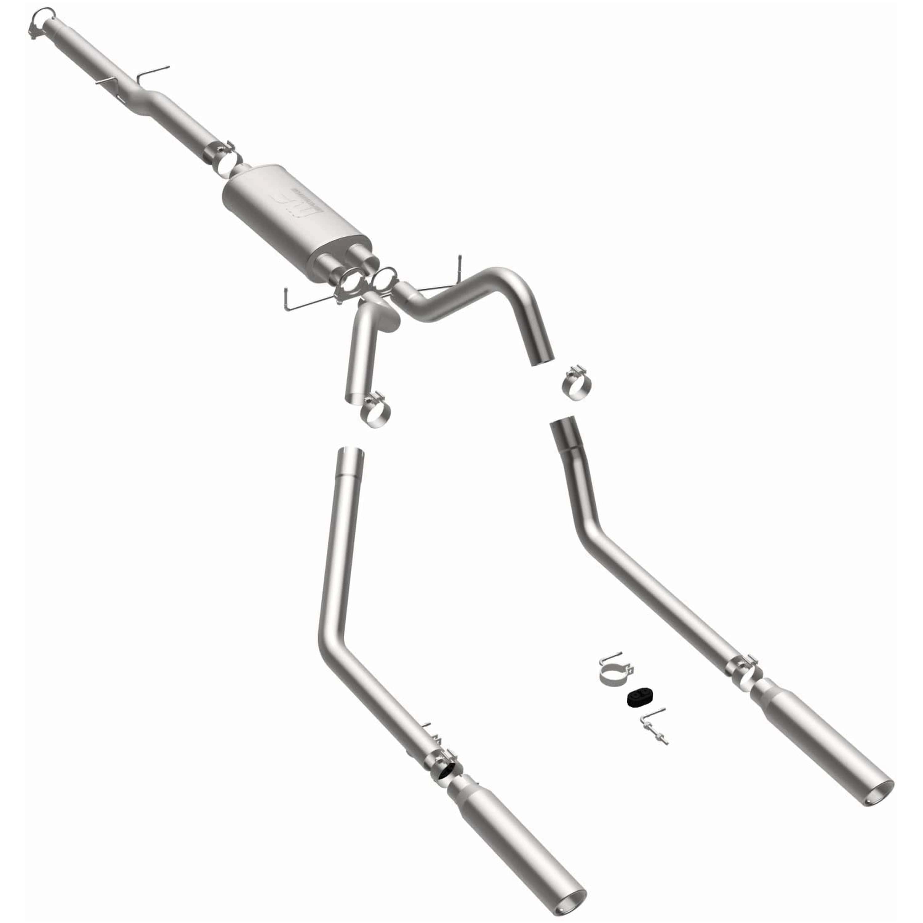 This exhaust system is crafted from high-quality stainless steel, providing excellent corrosion resistance and long-lasting durability. The mandrel-bent tubing maintains a consistent diameter throughout bends, preventing flow restrictions and enhancing exhaust scavenging. The straight-through muffler design minimizes backpressure while delivering MagnaFlow’s signature deep, resonant tone. Polished stainless steel tips add a sleek, professional look to the rear of your Dodge Ram 1500, complementing its rugged styling.