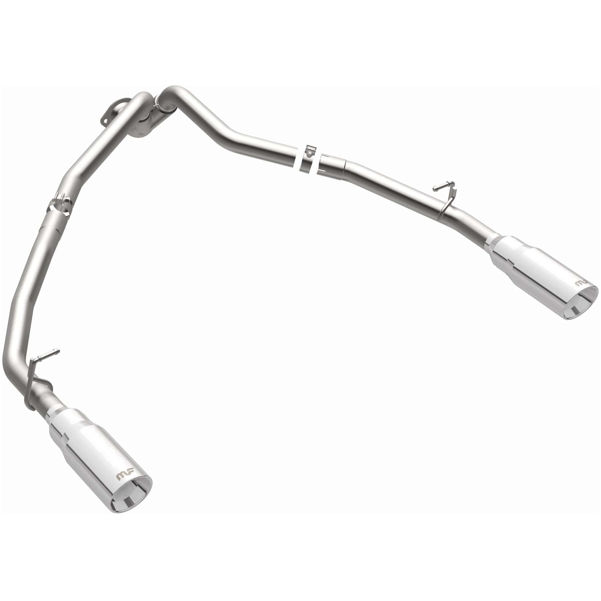 The dual split rear exit design not only provides an aggressive, refined look but also aids in balanced exhaust flow and sound dispersion. Polished welded-on double wall tips with rolled edges add a premium finish that resists discoloration and maintains a showroom shine over time.