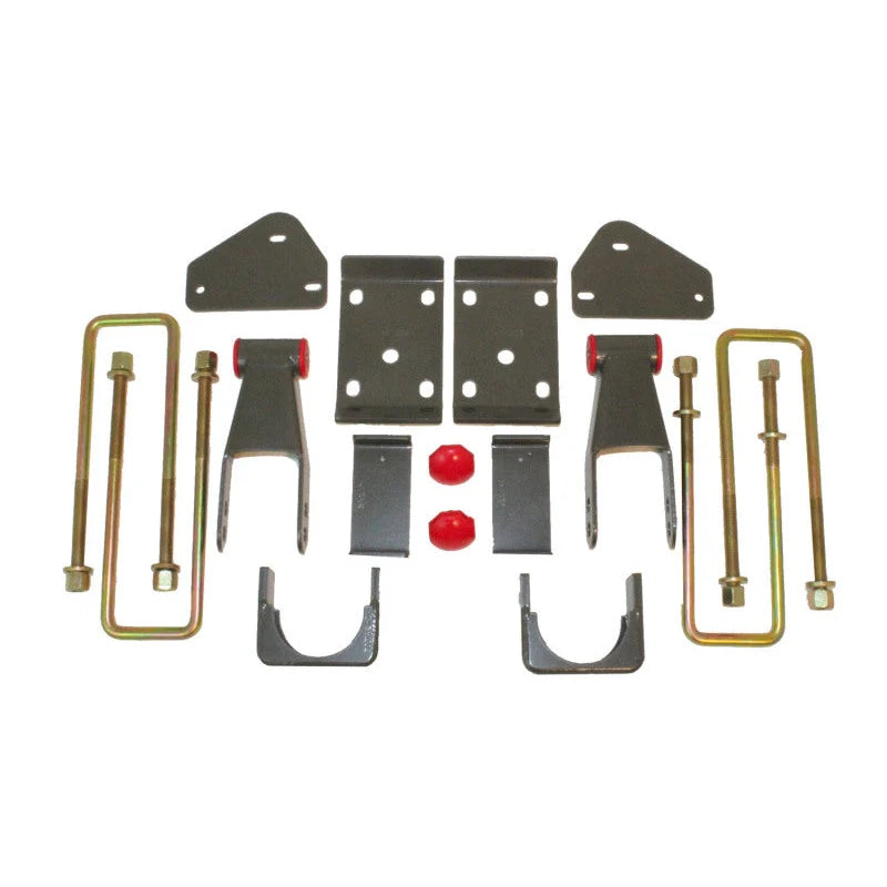 • Includes axle relocators to maintain proper pinion angle and driveline alignment