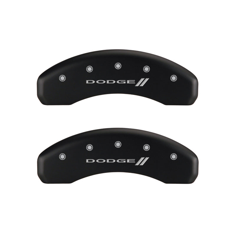 MGP Caliper Covers (FRONT AND REAR): Dodge Durango (07-09) / Ram 1500 (06-10) w/ Red Finish, Silver Characters, DODGE Logo