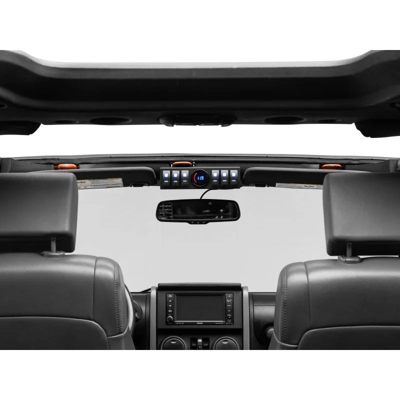 - Compact switch panel designed to mount above the rearview mirror for a clean, factory look