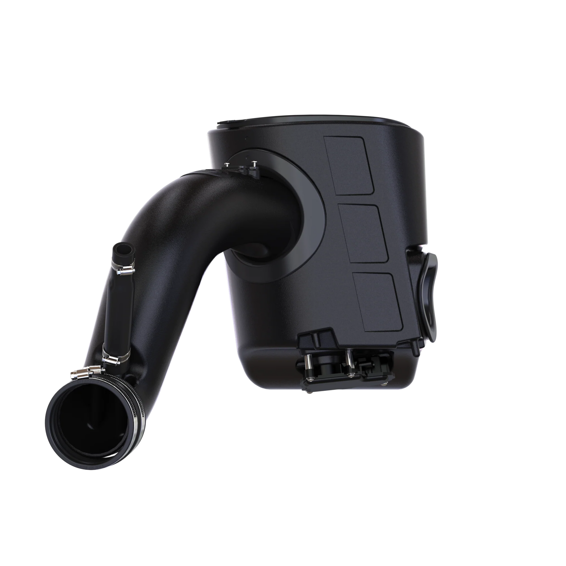Our intake uses the same motor that drives Ram-Air to activate our swing gate, giving you all the benefits of the stock system, plus much more. Draws air from the wheelwell inlet under normal driving conditions or inclement weather conditions (ice, snow, rain) to protect against the elements.