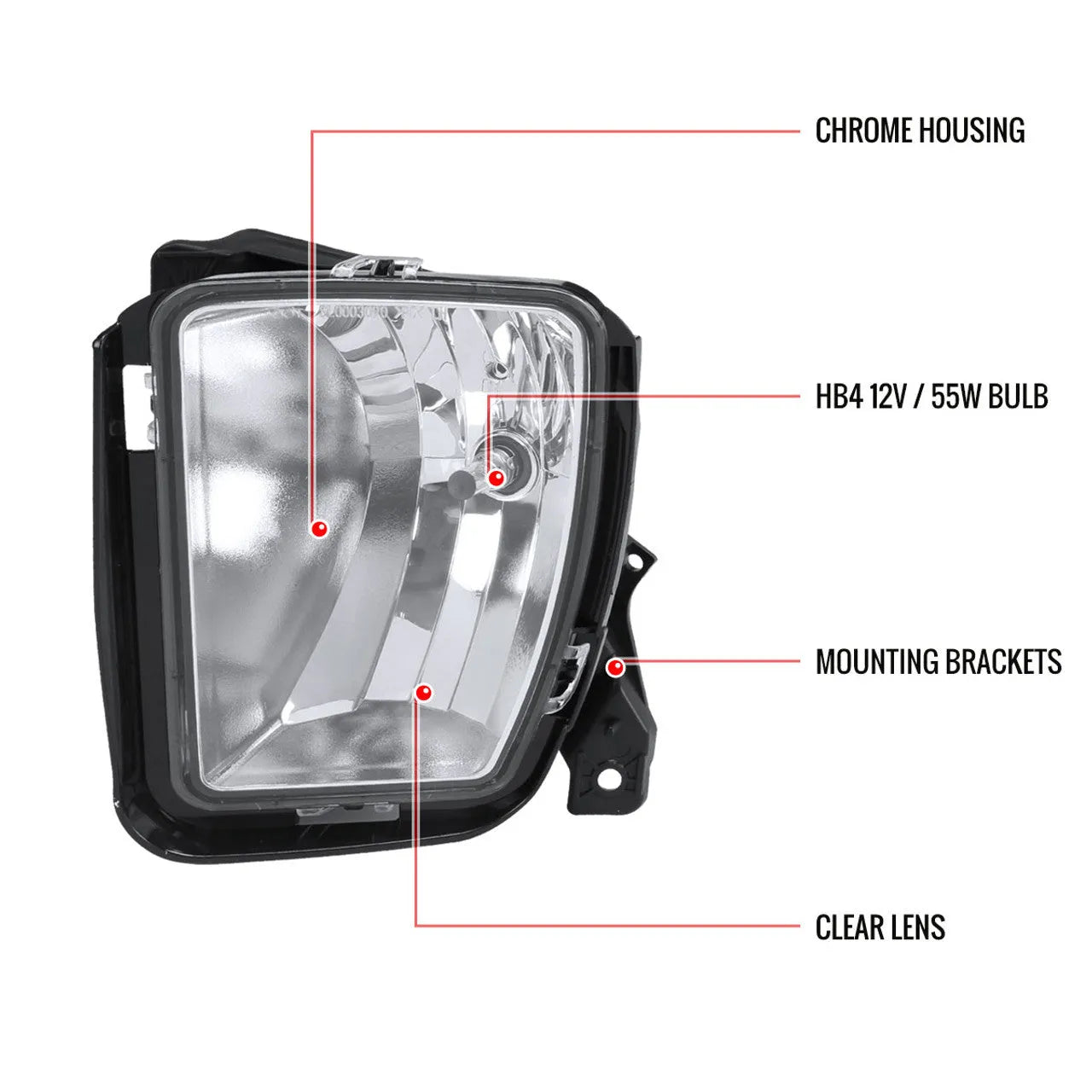 - Pair of driver and passenger side fog lights with chrome housing and clear lenses