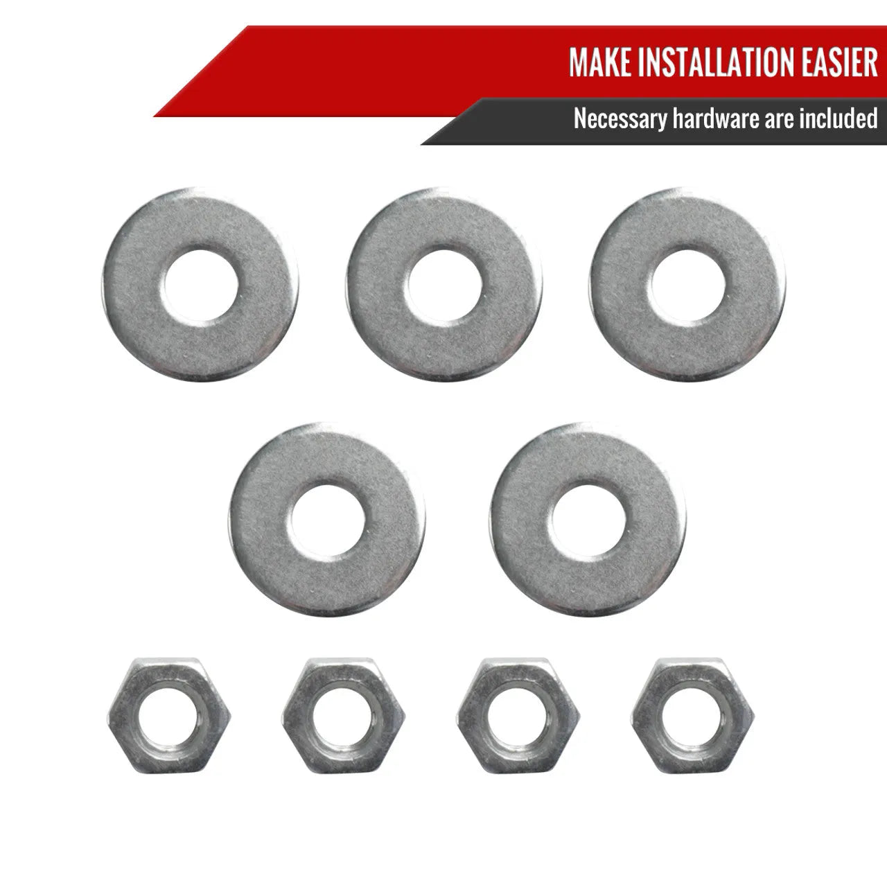- Necessary washers and nuts for installation