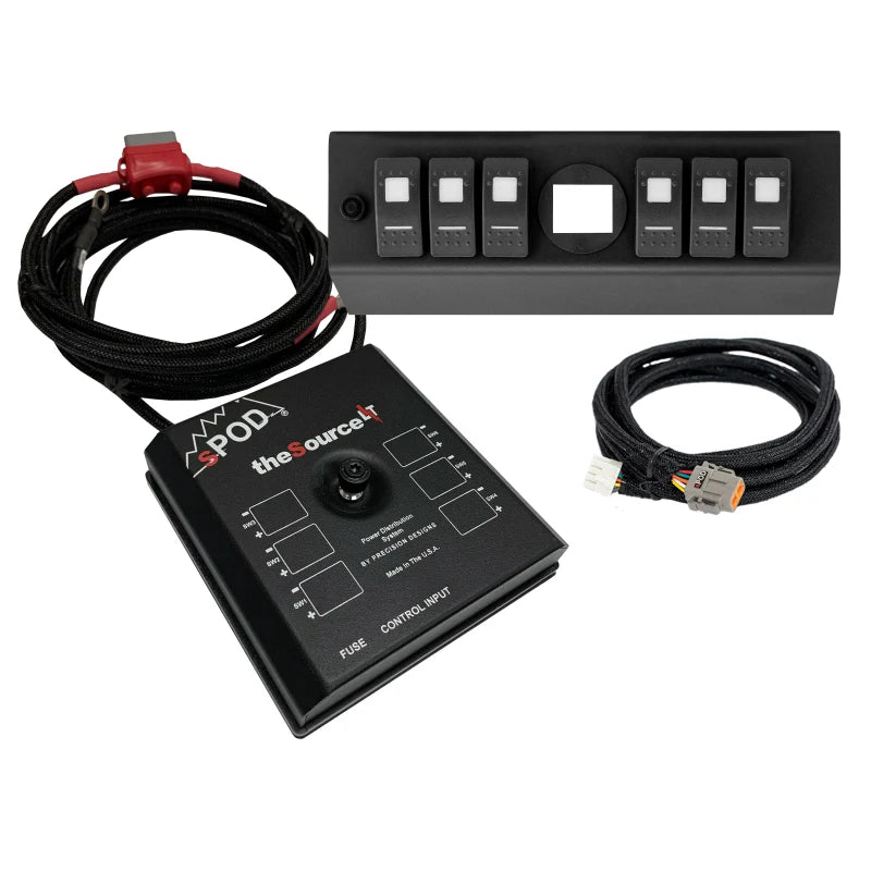 873125 SPOD Jeep Wrangler JK 2009-2018 SourceLT w/ Genesis Adapter and Amber LED Switch Panel. The SPOD SourceLT with Genesis Adapter and Amber LED Switch Panel offers a compact, efficient 6-circuit control system for powering 12V accessories with minimal wiring. Designed for 2009-2018 Jeep Wrangler JK models, it features Bluetooth connectivity for remote control, integrated battery protection, and durable, weatherproof construction. This system simplifies accessory management while ensuring safe, reliable operation on and off-road.