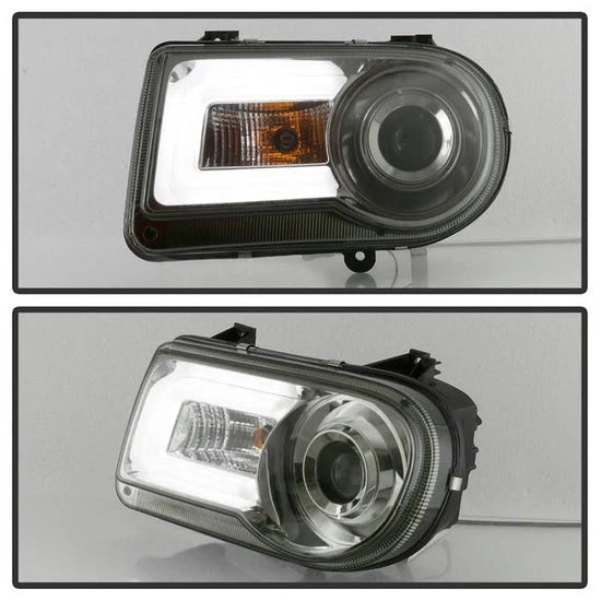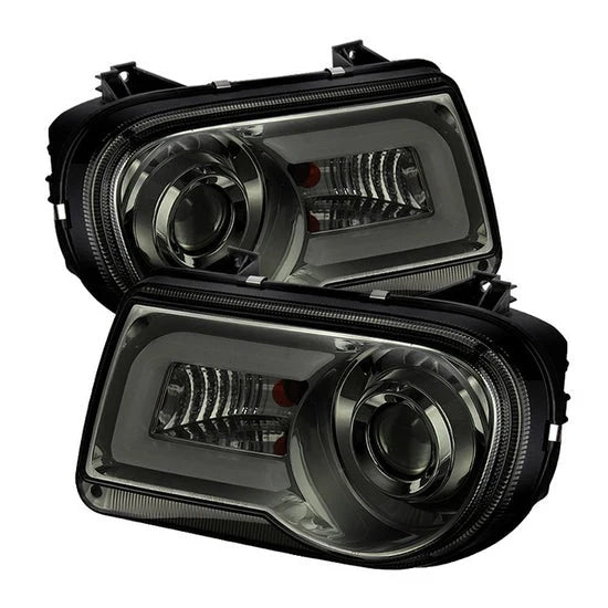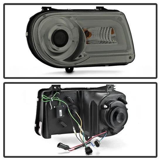 5075673 Spyder 05-10 Chrysler 300C LED DRL Projector Headlights (Smoke). These projector headlights are designed to improve looks and visibility for your vehicle. They are made by OEM approved and ISO certified manufacturers. They are made with OEM standard quality and are designed for stock lights direct replacement.