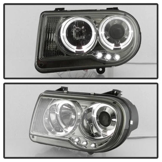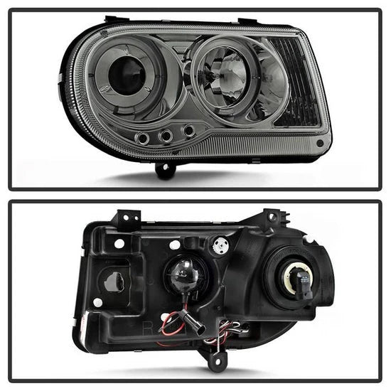 5009159 Spyder 05-10 Chrysler 300C LED Dual Halo Projector Headlights (Smoke). These projector headlights are designed to improve looks and visibility for your vehicle. They are made by OEM approved and ISO certified manufacturers. They are made with OEM standard quality and are designed for stock lights direct replacement.
