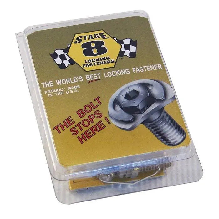 Stage 8 locking fasteners are crafted from high-grade steel alloys treated for corrosion resistance and strength. The double hex head design allows for secure torque application using standard tools while minimizing the risk of rounding or damage during installation or removal. The active mechanical locking mechanism employs a patented system that locks the fastener in place without relying on adhesives or thread lockers, which can degrade over time. This design ensures consistent clamping force and prevents loosening caused by engine vibrations and heat cycles.