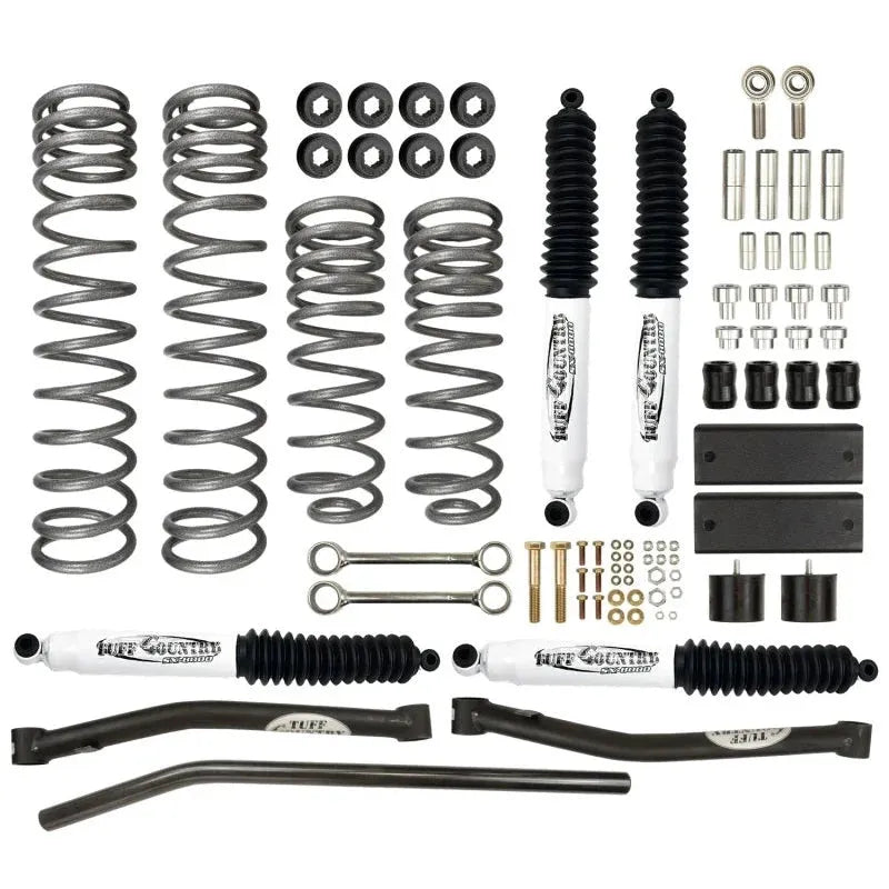 Built with Tuff Country’s trusted expertise spanning over 30 years, this suspension lift kit is ideal for Jeep enthusiasts seeking a durable upgrade that maintains factory-like ride quality while expanding tire clearance and suspension travel.