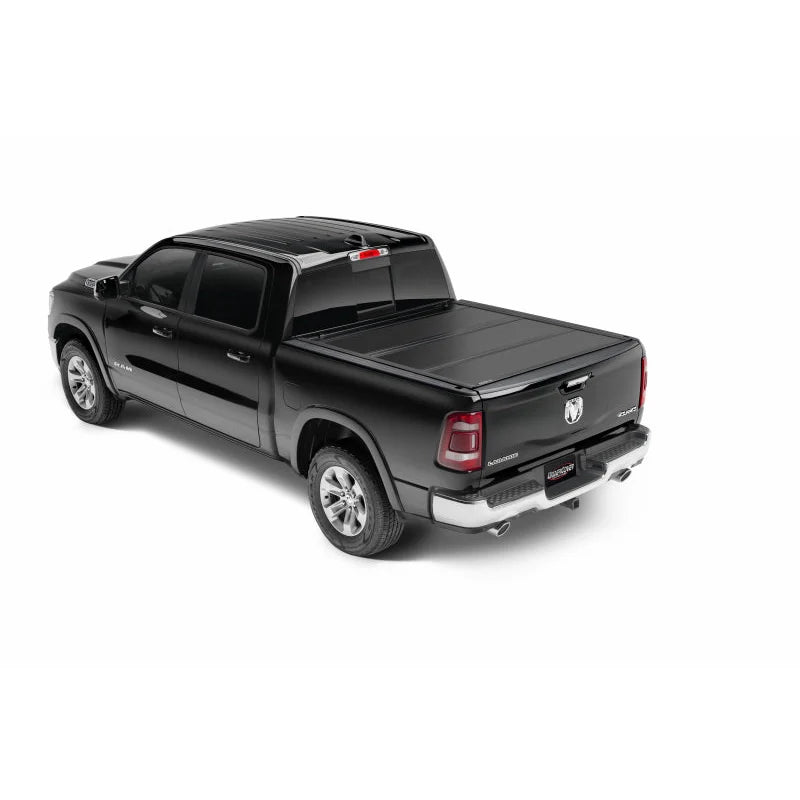The UnderCover Ultra Flex Matte Black Folding Truck Bed Cover is a premium hard folding cover designed specifically for Ram 1500 trucks from 2019 through 2026. Engineered to combine style, functionality, and durability, this cover offers a sleek matte black finish that enhances your truck’s appearance while providing superior protection for your cargo. Ideal for truck owners who demand versatility and security, the Ultra Flex allows you to access your truck bed easily with multiple riding positions and a dual action tailgate seal that lets you close the tailgate with the cover either up or down.