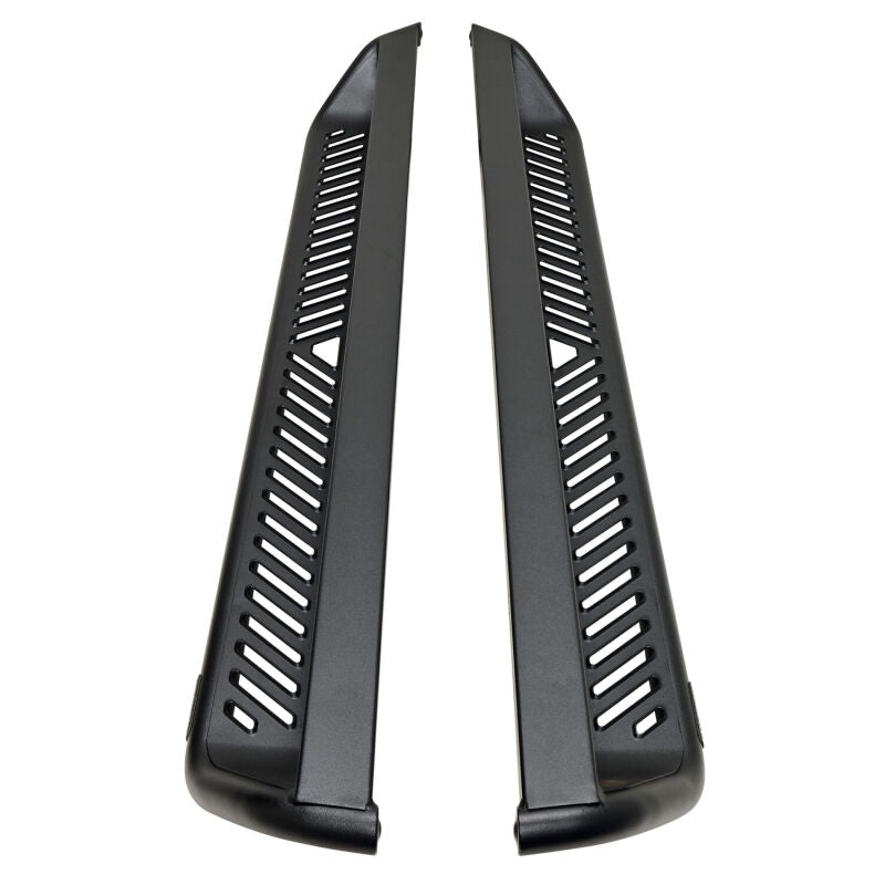 Designed specifically for Ram 1500 models from 2019 through 2026, these running boards bolt on easily with no drilling required, ensuring a clean, factory-integrated look. Finished in a durable textured black powder coat over an electrostatic base coat, they resist corrosion and wear, maintaining their rugged appearance through all weather conditions.
