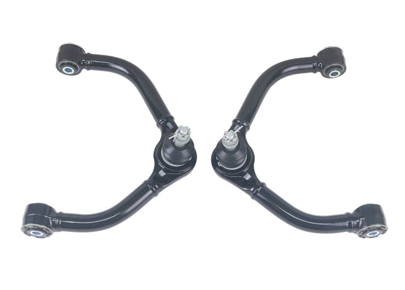 KTA317 Whiteline Dodge Ram 1500 2019+ Front Upper Camber Control Arms (FRONT). Whiteline Front Upper Camber Control Arms enhance alignment precision and suspension performance for lifted Dodge Ram 1500 models from 2019 onward. Designed to correct camber and caster issues caused by lifts between 30mm and 70mm, these arms provide increased caster and negative camber while improving clearance and articulation. Featuring maintenance-free GIIRO bushings, they ensure durability and smoother suspension movement for off-road and street driving.