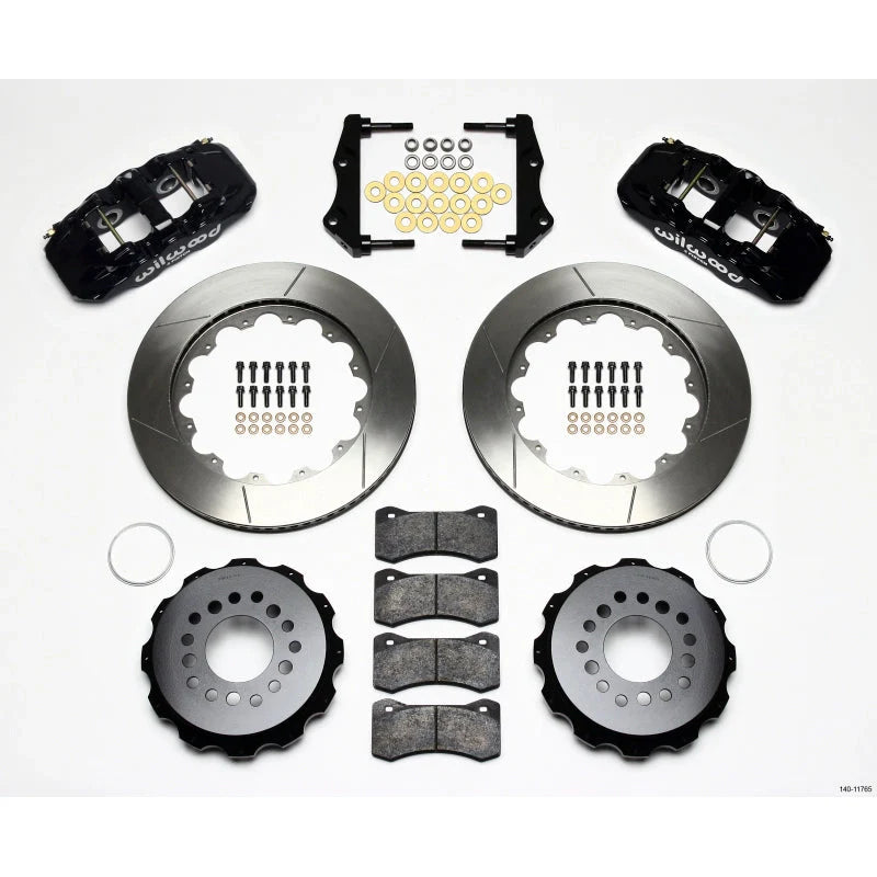 - Two Wilwood AERO4 four-piston black powder-coated calipers